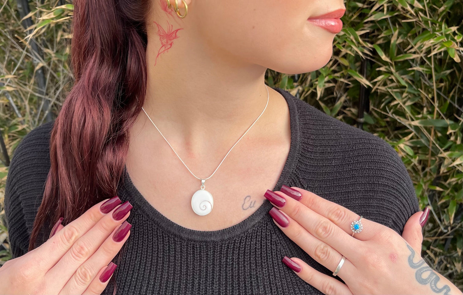 L'opercule symbolise les yeux de Lucie. En porter éloigne le mauvais oeil et porte chance.