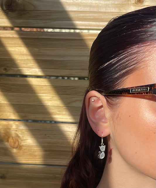 Boucles d'Oreilles Chat Argent 925 Nacre