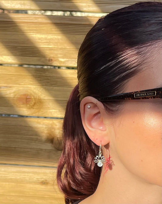 Boucles d'Oreilles Fleur de Lotus Argent 925 Oeil de Ste Lucie
