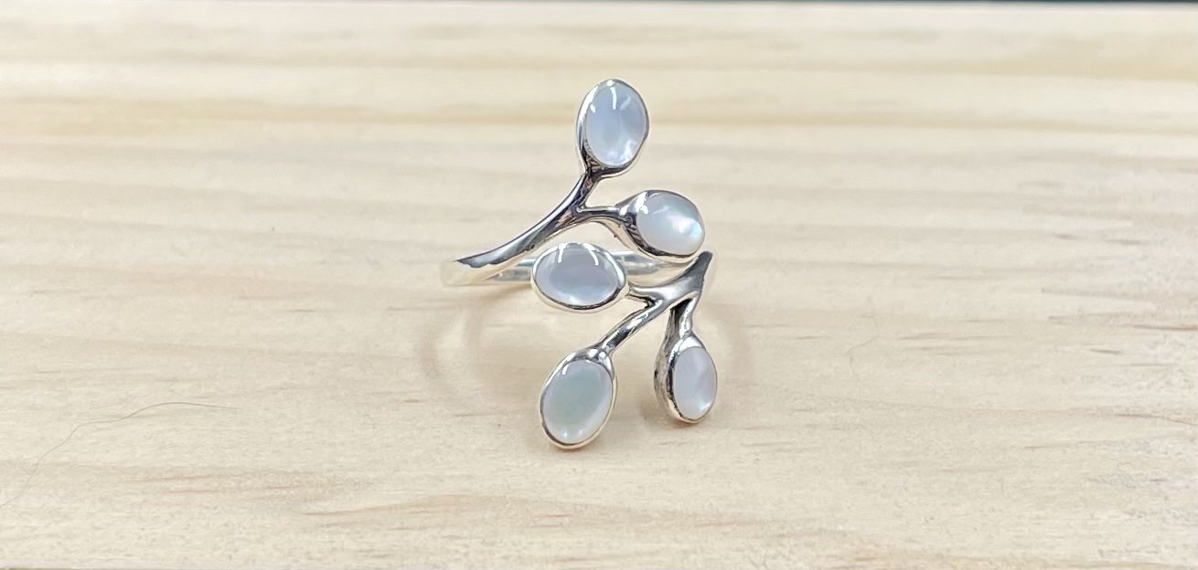 Bague réglable en argent 925, ornée de Nacre naturelle .