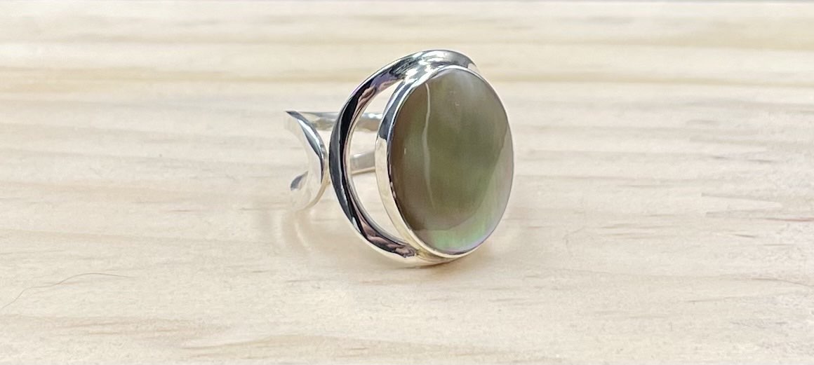 Élégante et intemporelle, cette bague réglable en argent 925 est ornée d'une N acre naturelle marron en forme ovale.