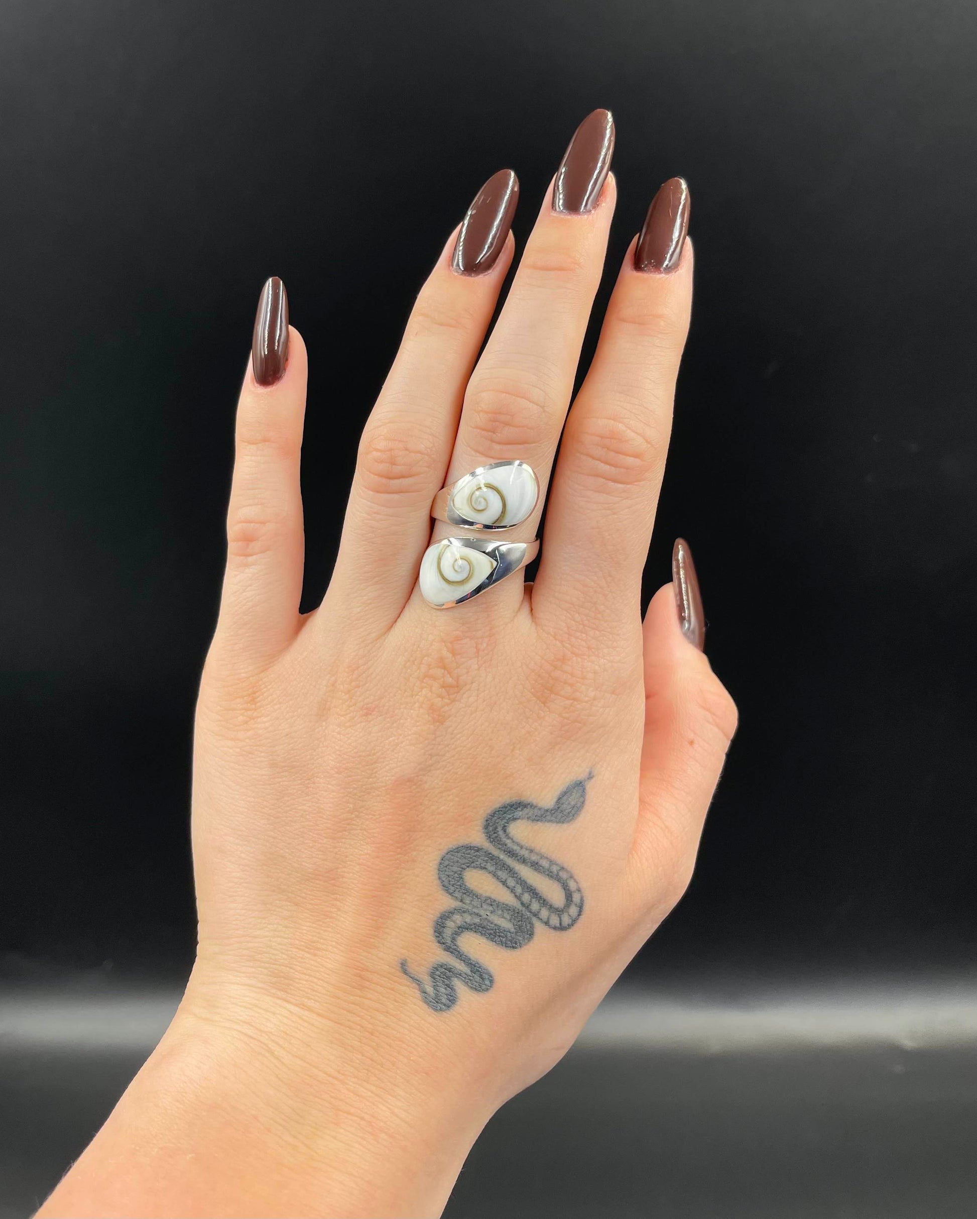 Succombez au charme de cette bague réglable en argent 925, au design ouvert et raffiné. Ornée de deux véritables coquillages Œil de Sainte-Lucie de chaque côté, elle incarne harmonie et protection. Son style unique et épuré s'adapte parfaitement à toutes les tailles de doigt, offrant un confort optimal. Un bijou symbolique et intemporel, idéal pour sublimer votre tenue avec une touche de naturel et d'élégance.