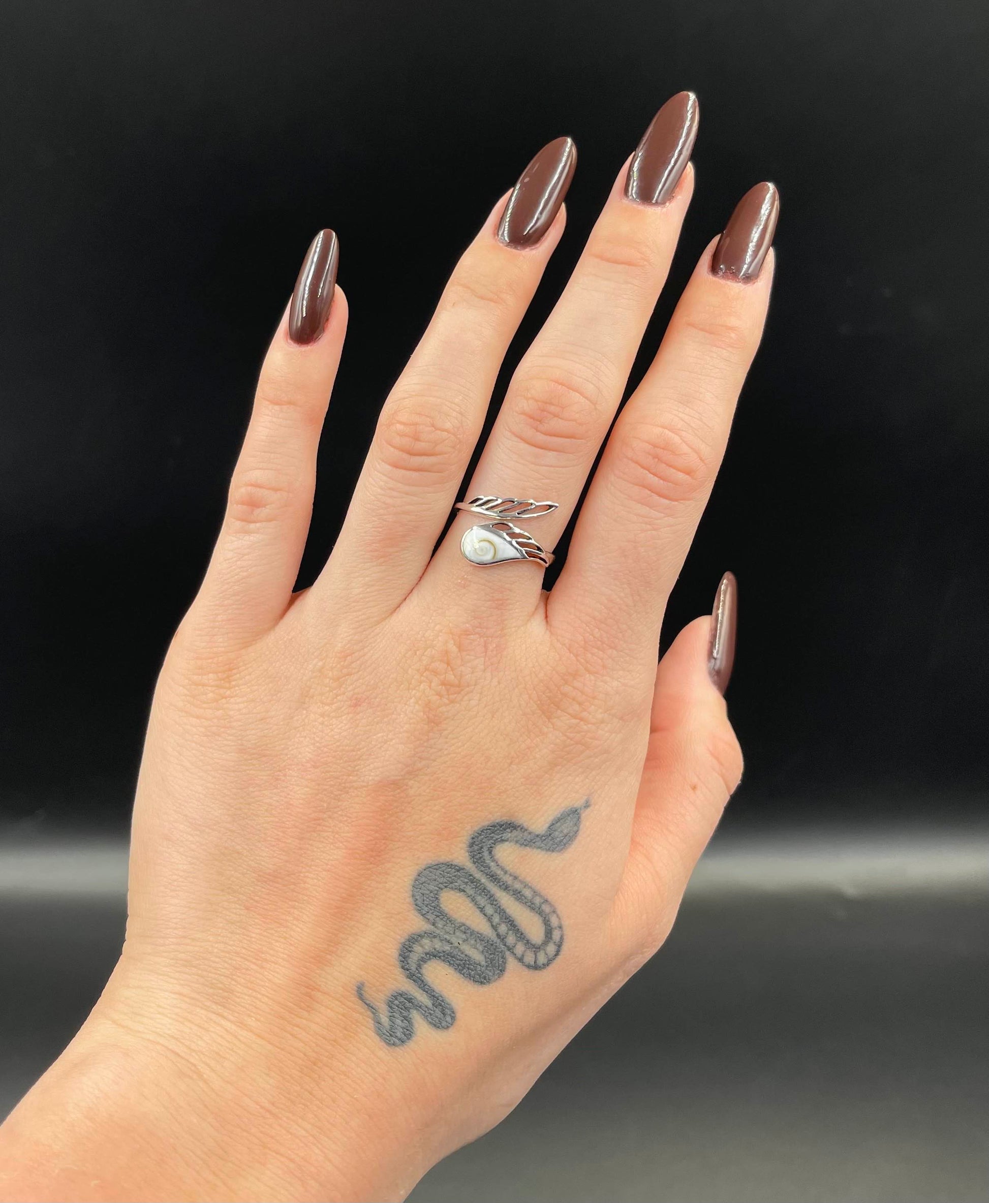 Apportez une touche de douceur et de spiritualité à votre main avec cette sublime bague réglable en argent 925, délicatement façonnée en forme d'aile d'ange. En son centre, un coquillage naturel Œil de Sainte-Lucie ajoute une dimension protectrice et porte-bonheur à ce bijou raffiné. Son design élégant et son anneau ajustable en font un accessoire à la fois symbolique et confortable, parfait pour sublimer votre style au quotidien.