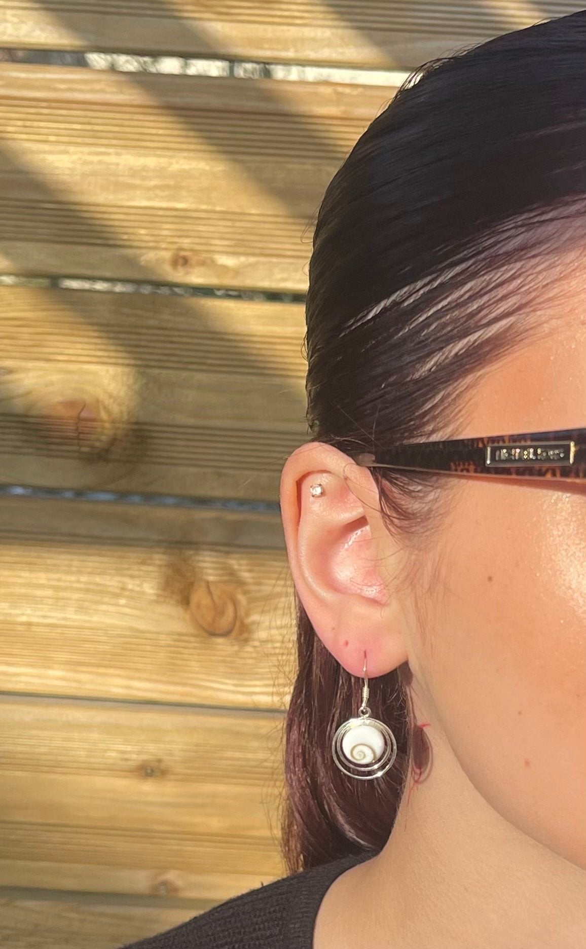 Apportez une touche d'élégance et de symbolisme à votre style avec ces magnifiques boucles d'oreilles en argent 925. Leur design raffiné en forme de rond met en valeur le coquillage naturel Œil de Sainte-Lucie , réputé pour porter chance et protection. À la fois sobres et sophistiquées, ces boucles d'oreilles s'adaptent à toutes les tenues et occasions.