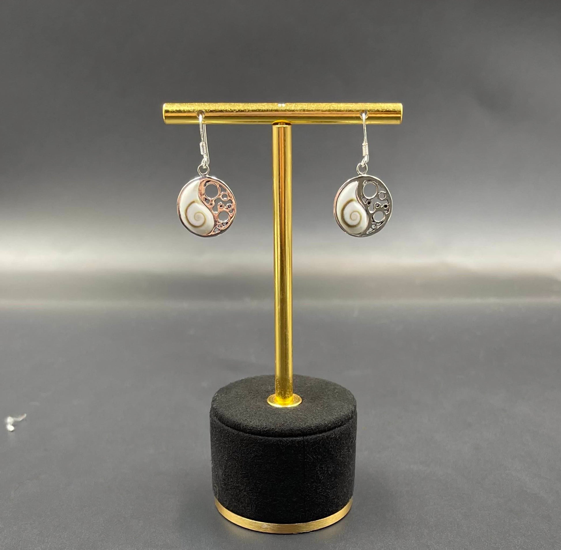 Équilibre et harmonie s’invitent dans votre style avec ces superbes boucles d’oreilles en argent 925 en forme de rond, mettant en valeur un symbole Yin Yang délicatement incrusté d’authentiques coquillages naturels Œil de Sainte Lucie. Un bijou raffiné et porte-bonheur, idéal pour celles et ceux en quête d’élégance et de sens.