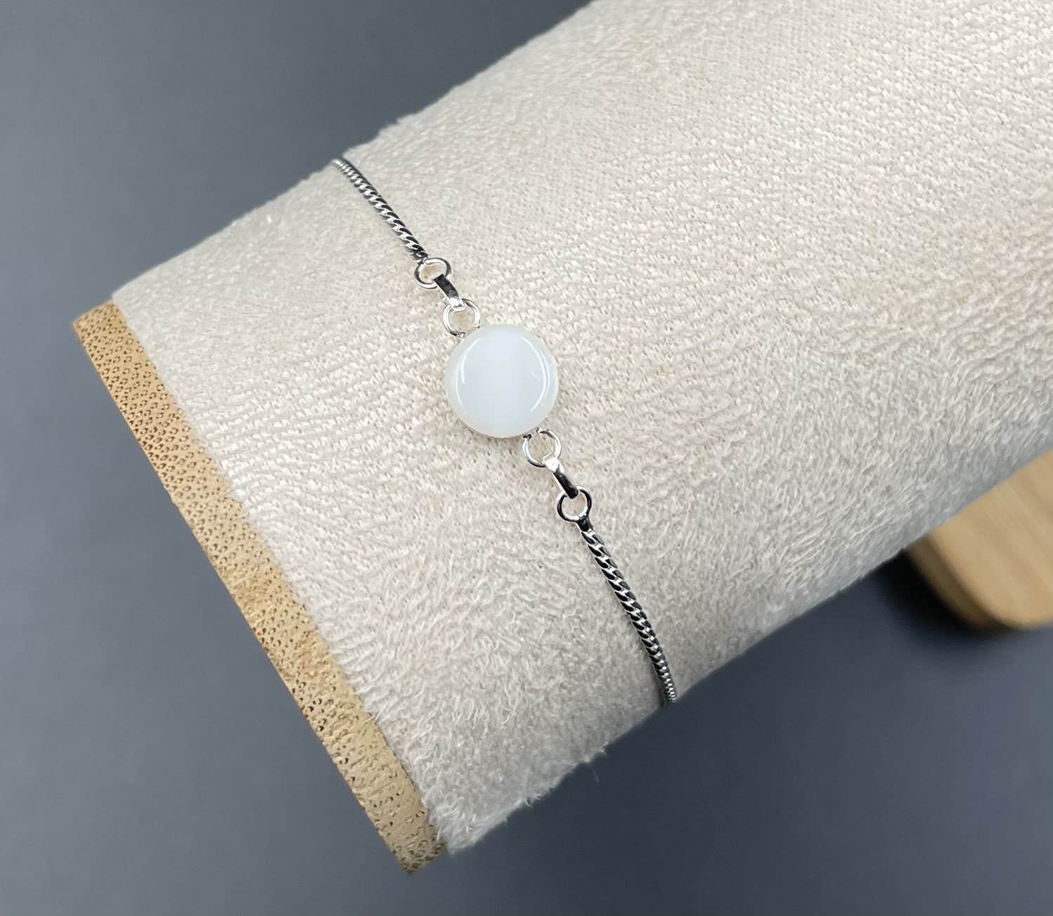 Ce bracelet en argent 925 associe élégance et modernité avec son médaillon rond en coquillage naturel Nacre, sublimé par une chaîne serpent fluide et délicate. Ses reflets irisés captent la lumière avec subtilité, apportant une touche de douceur et de sophistication à votre poignet. Un bijou intemporel et raffiné, parfait pour toutes les occasions.