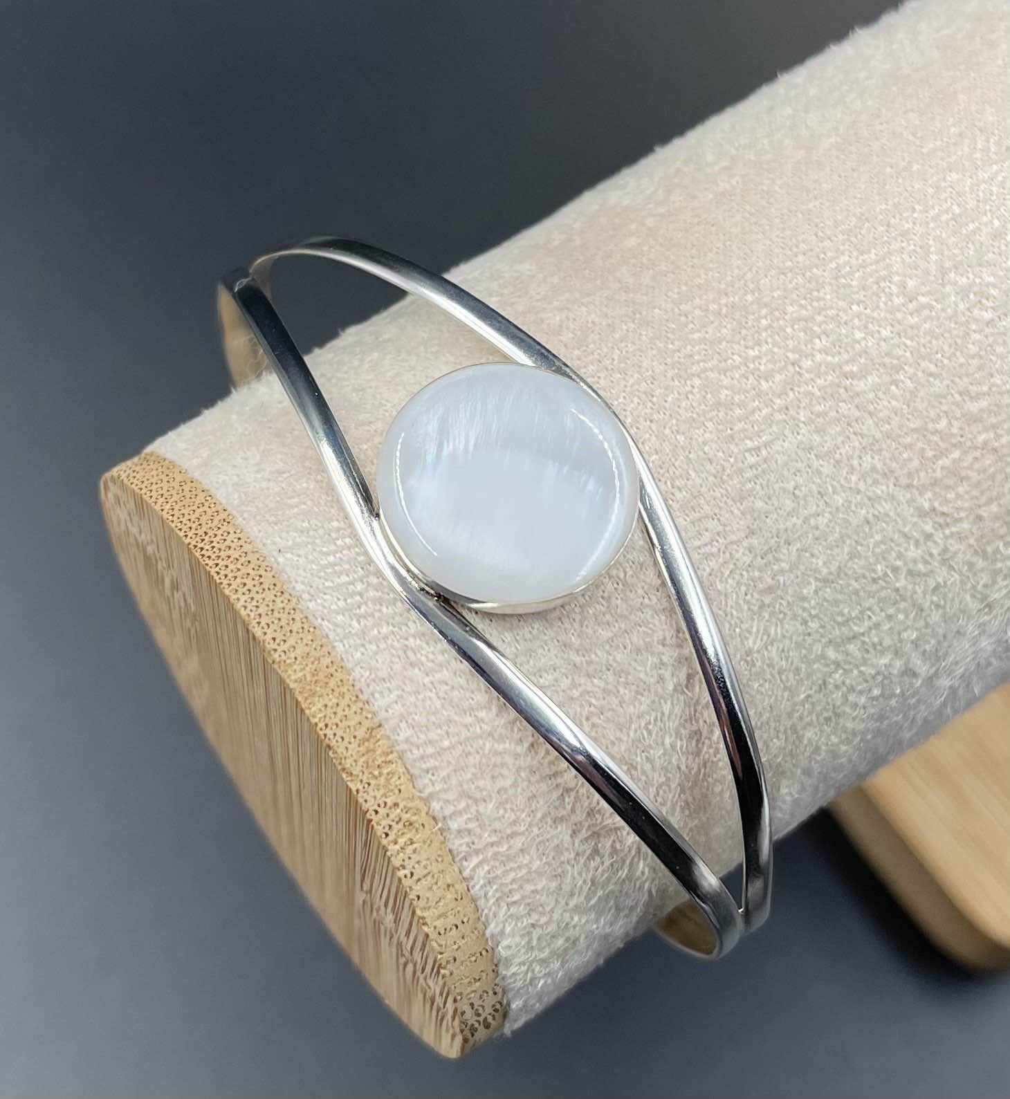 Sublimez votre poignet avec cette élégante manchette en argent 925, ornée d’un médaillon rond en coquillage naturel Nacre. Ses reflets irisés captent délicatement la lumière, apportant une touche de douceur et de raffinement. Avec son design épuré et intemporel, ce bijou allie modernité et élégance naturelle, parfait pour toutes les occasions.