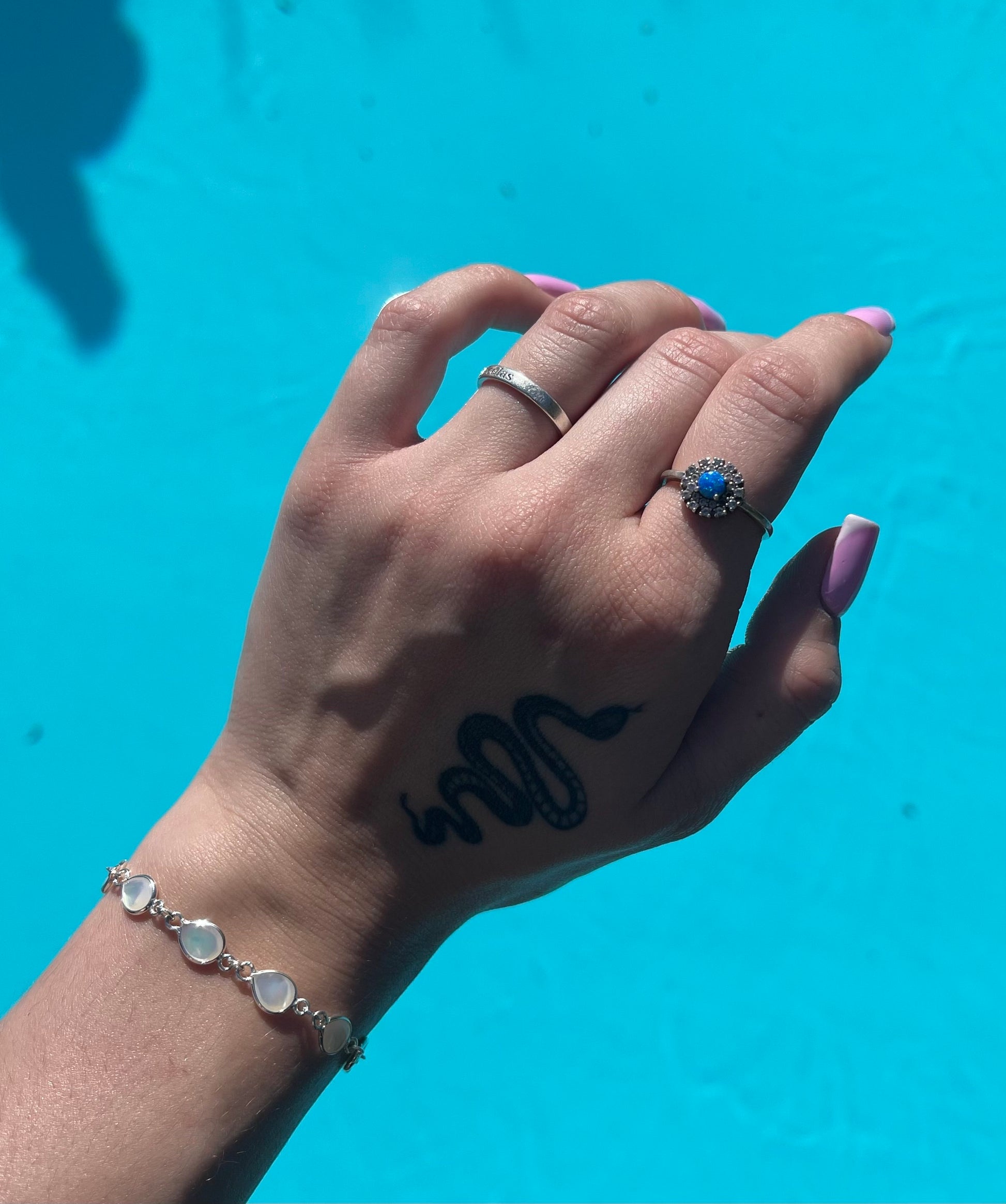 Ce bracelet en argent 925 sublime votre poignet avec une série de gouttes en coquillage naturel Nacre, travaillées en recto verso pour un éclat raffiné sous tous les angles. Ses reflets irisés captent la lumière avec subtilité, apportant une touche de douceur et de sophistication. Un bijou délicat et intemporel, parfait pour illuminer votre style avec finesse et élégance.