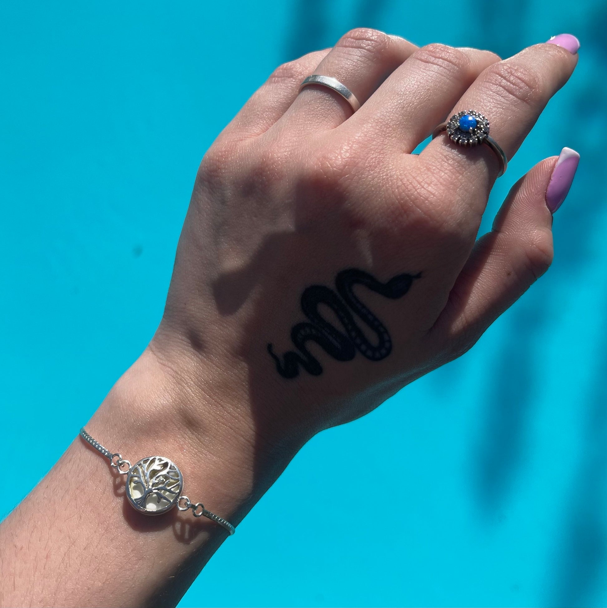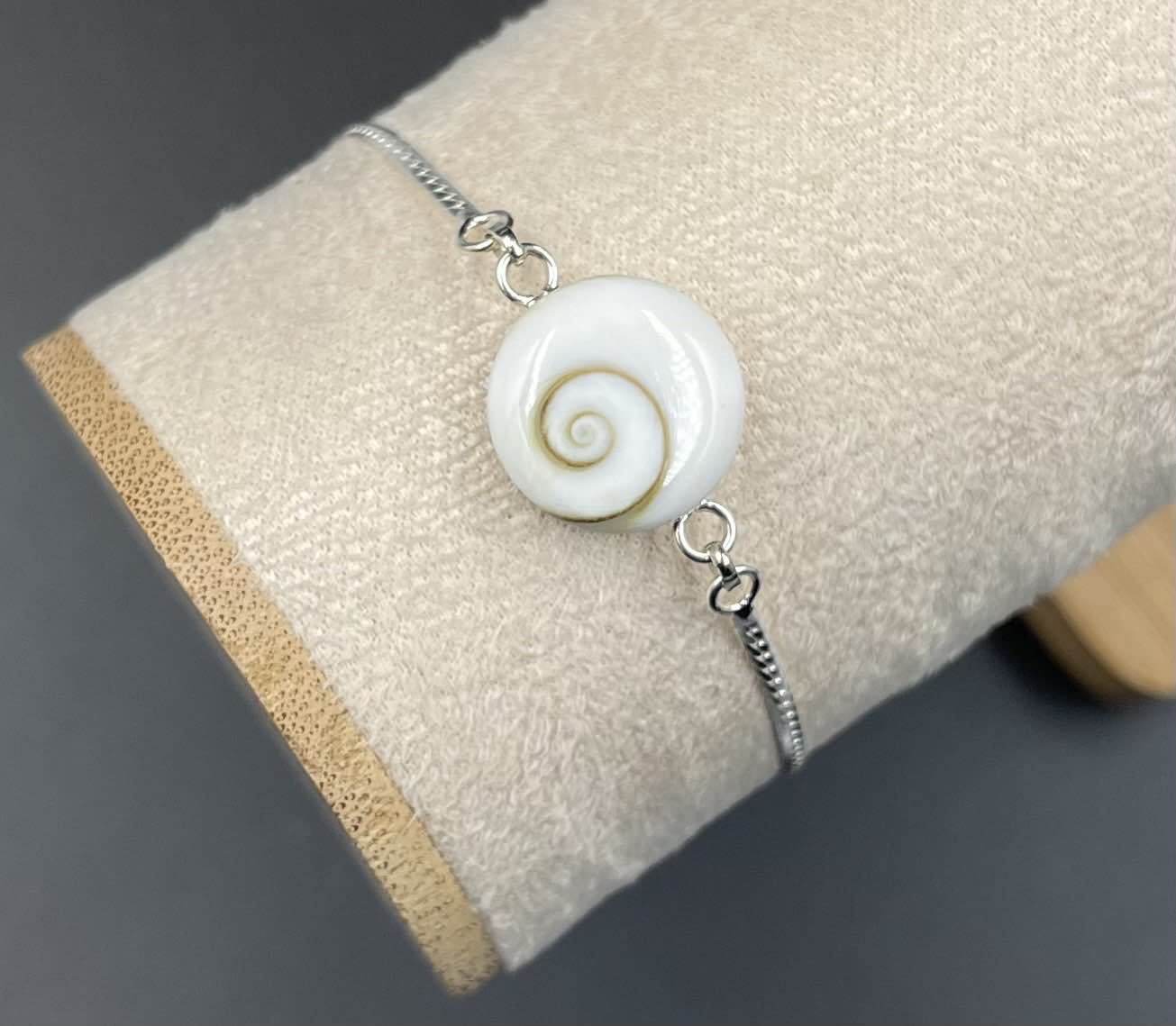 Ce bracelet en argent 925 réunit symbolisme et élégance avec un médaillon rond en coquillage naturel Œil de Sainte-Lucie, sublimé en recto verso. D’un côté, l’Œil de Sainte-Lucie, réputé pour apporter chance et protection, et de l’autre, un délicat Arbre de Vie, symbole de force et d’équilibre. Un bijou raffiné et intemporel, parfait pour accompagner votre quotidien avec une touche de spiritualité et d’élégance.