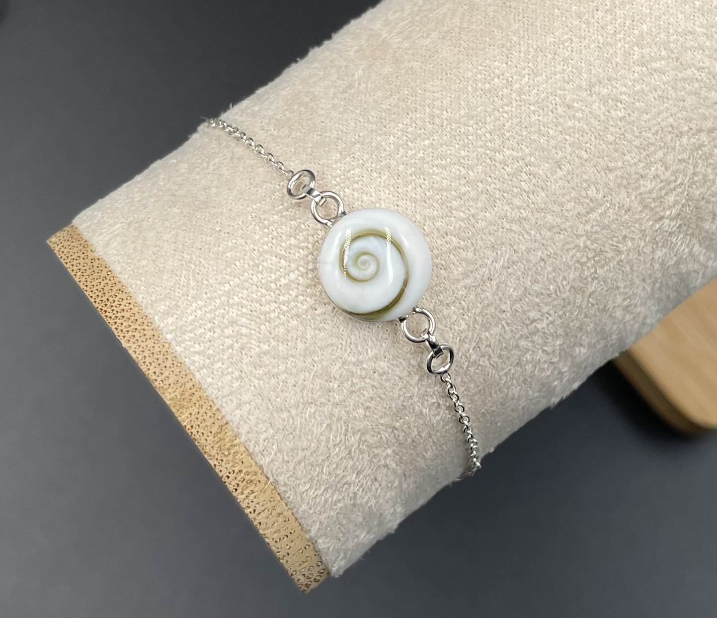 Laissez-vous séduire par ce magnifique bracelet en argent 925, orné d’un médaillon rond en Œil de Sainte-Lucie. Ce bijou allie raffinement et symbolisme. Symbole de chance et de protection, l’Œil de Sainte-Lucie est une véritable amulette naturelle, réputée pour éloigner les énergies négatives et attirer la prospérité.