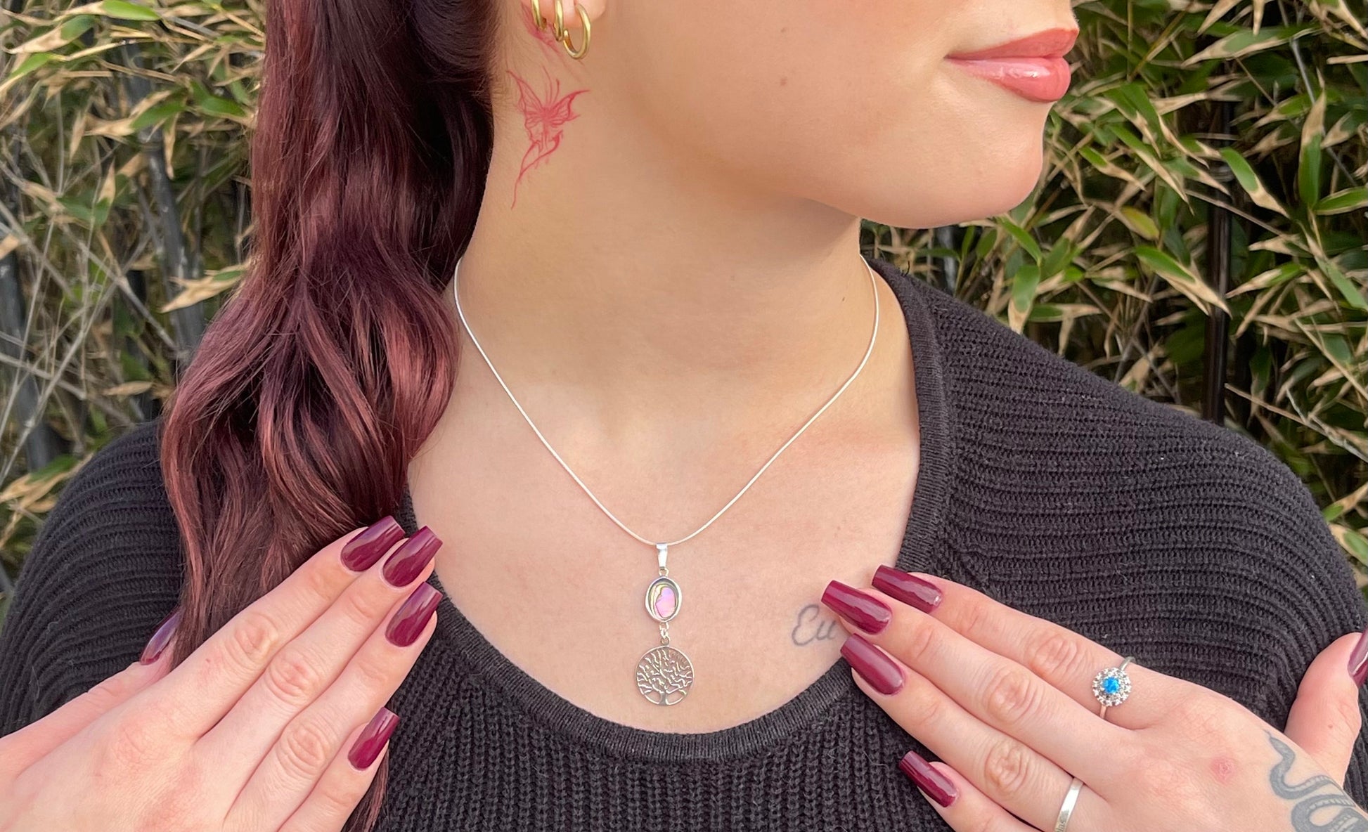 Ce magnifique pendentif en argent 925 représente l’Arbre de Vie, symbole de force et d’équilibre. Son design raffiné est sublimé par un coquillage naturel Abalone, offrant des reflets chatoyants uniques. Sous l’arbre, un petit rond en Abalone vient parfaire l’ensemble, ajoutant une touche d’élégance et d’authenticité. Un bijou empreint de signification, idéal pour sublimer votre style avec finesse et originalité.