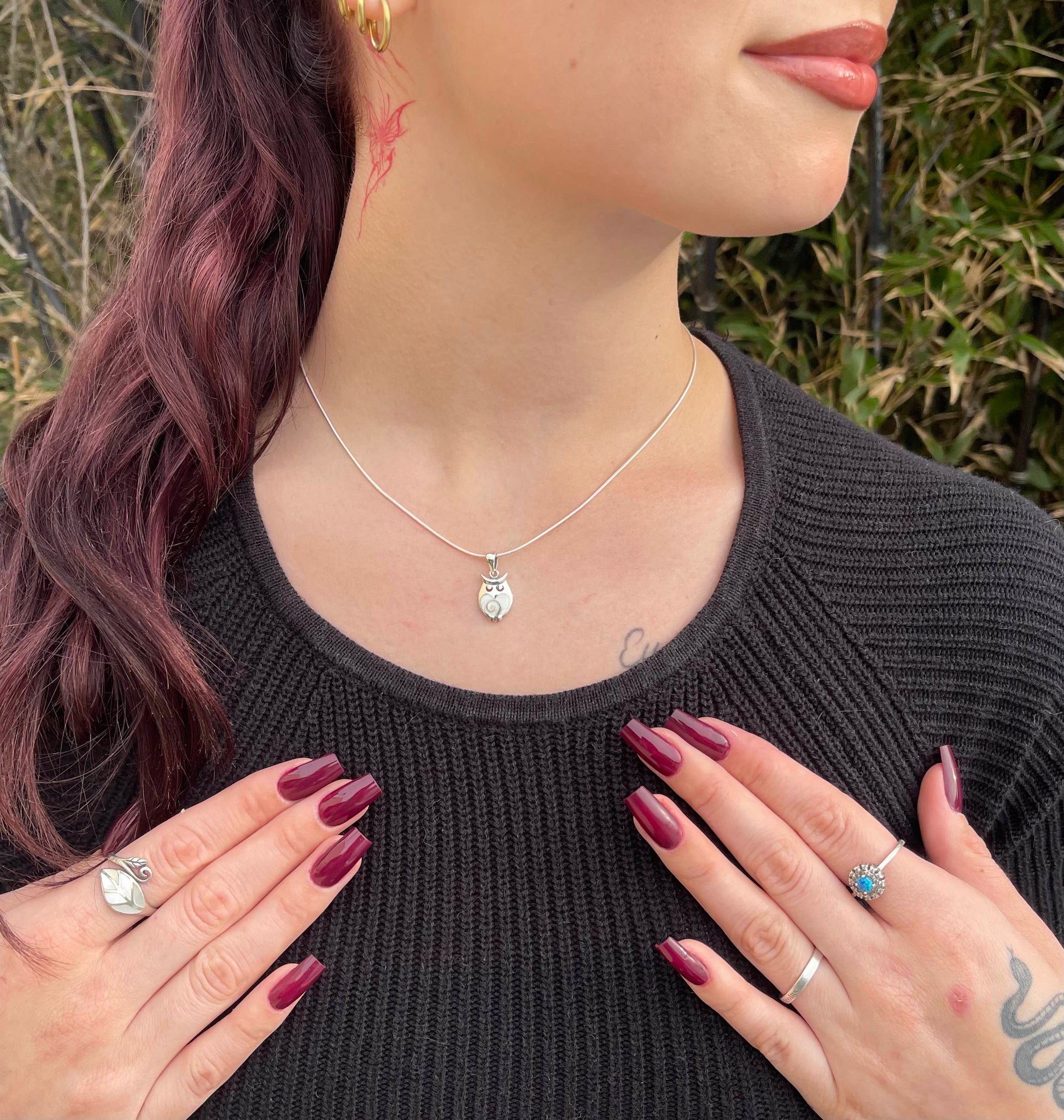 Ce pendentif en argent 925 en forme de hibou allie mystère et élégance. Son centre est orné d'un coquillage naturel Œil de Sainte-Lucie , reconnu pour porter chance et protection. Représentant la sagesse et l'intuition, ce bijou unique est idéal pour ceux qui recherchent un accessoire à la fois symbolique et raffiné. Parfait pour ajouter une touche de magie et de nature à votre style.