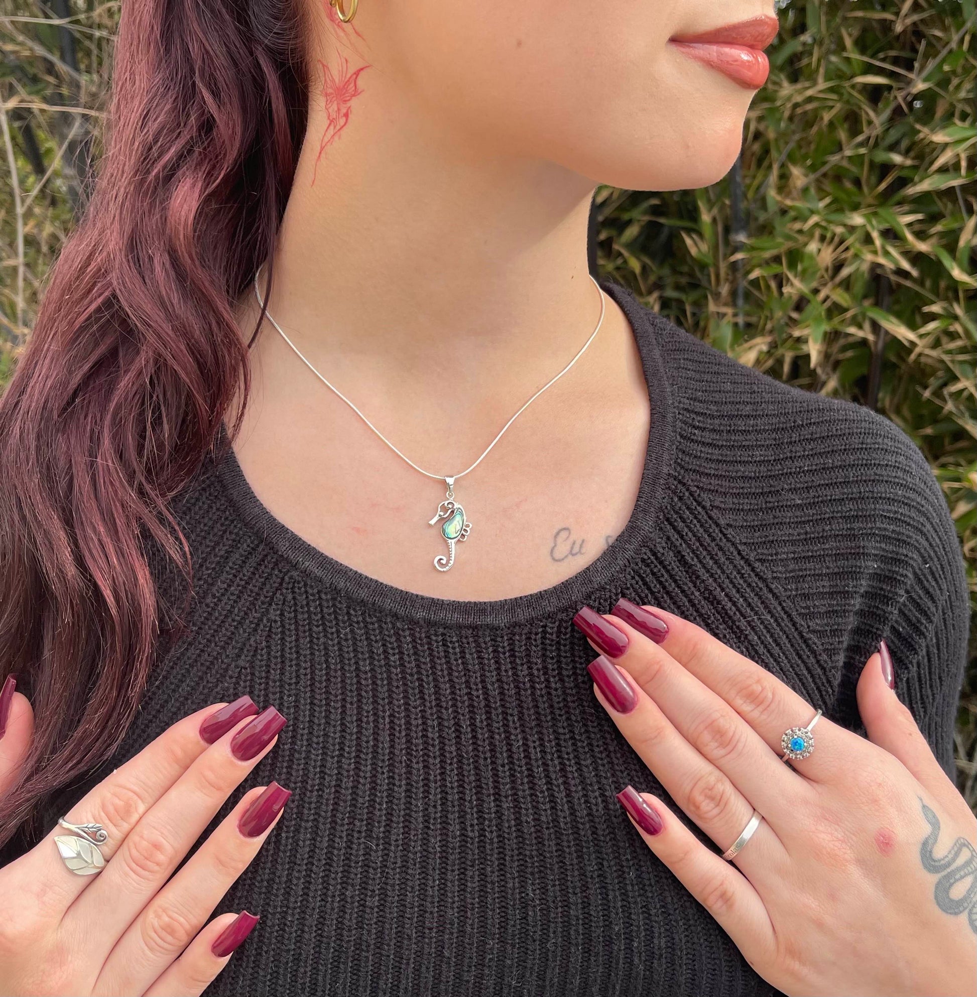 Ce pendentif en argent 925 en forme d’hippocampe incarne toute la beauté et la magie du monde marin. Son centre est sublimé par un coquillage naturel Abalone aux reflets chatoyants, offrant une palette de couleurs uniques qui captent la lumière avec éclat. Symbole de force et de protection, ce bijou raffiné est idéal pour les amoureux de l’océan et de la nature.