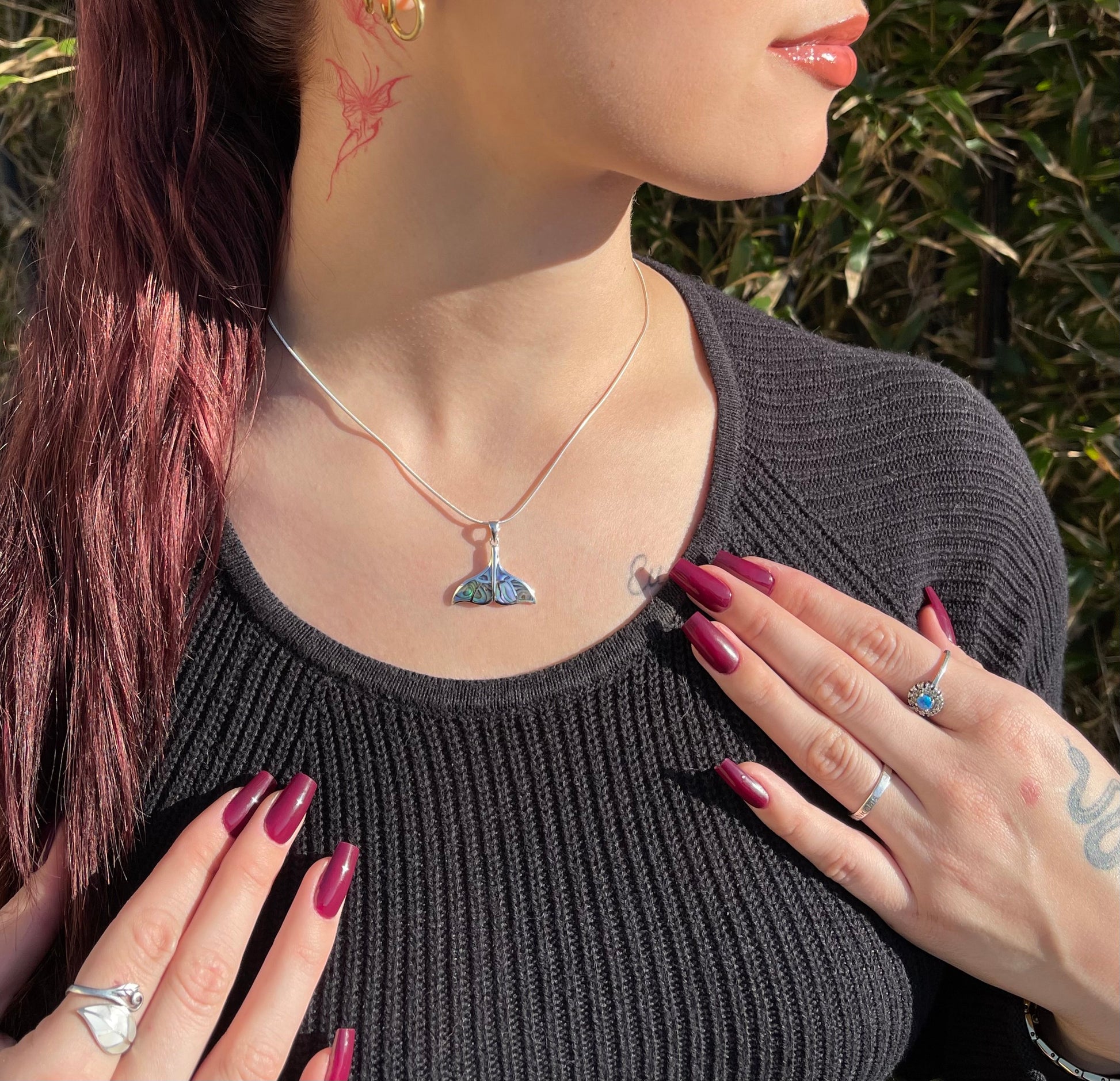 Ce pendentif en argent 925 représente une élégante queue de baleine, symbole de force, de liberté et d’harmonie marine. Il est sublimé par un magnifique coquillage naturel Abalone, aux reflets chatoyants de bleu, vert et violet, rappelant les profondeurs mystérieuses de l’océan. Un bijou raffiné et unique, idéal pour les amoureux de la mer et de la nature.