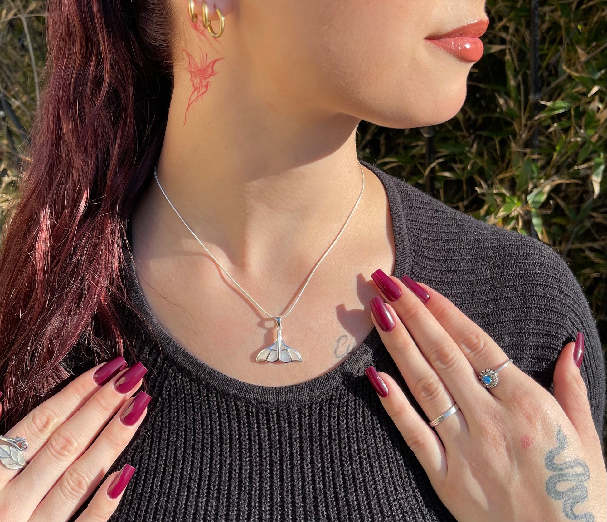 Ce pendentif en argent 925 représente une gracieuse queue de baleine, symbole de liberté et de connexion avec l’océan. Il est orné d’un sublime coquillage naturel Nacre, dont les reflets irisés captent délicatement la lumière, apportant une touche de douceur et d’élégance. Un bijou raffiné et intemporel, parfait pour les amoureux de la mer et des trésors naturels.